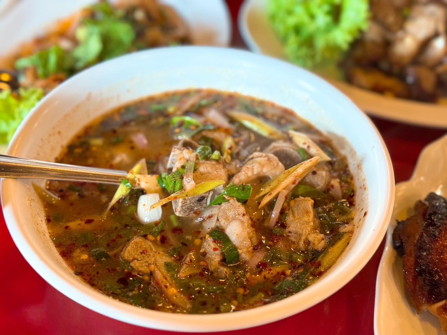 ส้มตำ บ้านกัปตัน พิกัดร้าน : ตลาดบ้านใหม่ 100 ปี ร้านอาหารอีสานริมแม่น้ำบางปะกงในตลาดบ้านใหม่ 100 ปี ร้านนี้ยังเกิดจากความตั้งใจของอดีตกัปตันการบินไทยที่อยากให้ครอบครัวและเพื่อนฝูงได้กลับมารวมตัวกันอีกครั้ง ทำให้ร้านนี้เต็มไปด้วยบรรยากาศอบอุ่นเหมือนกินข้าวบ้านญาตินั่นเอง ในส่วนของเมนูน่าทานก็ต้องเลยว่ามีให้เลือกเยอะมาก และยังรับประกันความแซ่บแบบอีสานแท้ๆ แน่นอน อาทิ ส้มตำไทยคอหมูย่าง ตำถั่วฝักยาวหมูกรอบ ไก่ย่างคั่วพริกเกลือ หมูกรอบ ต้มแซบซี่โครงหมู ลาบปลาดุก และซุปหน่อไม้ ทุกจานให้รสชาติจัดเต็มแบบไม่หวงเครื่อง ในราคาสบายกระเป๋าสุดๆ