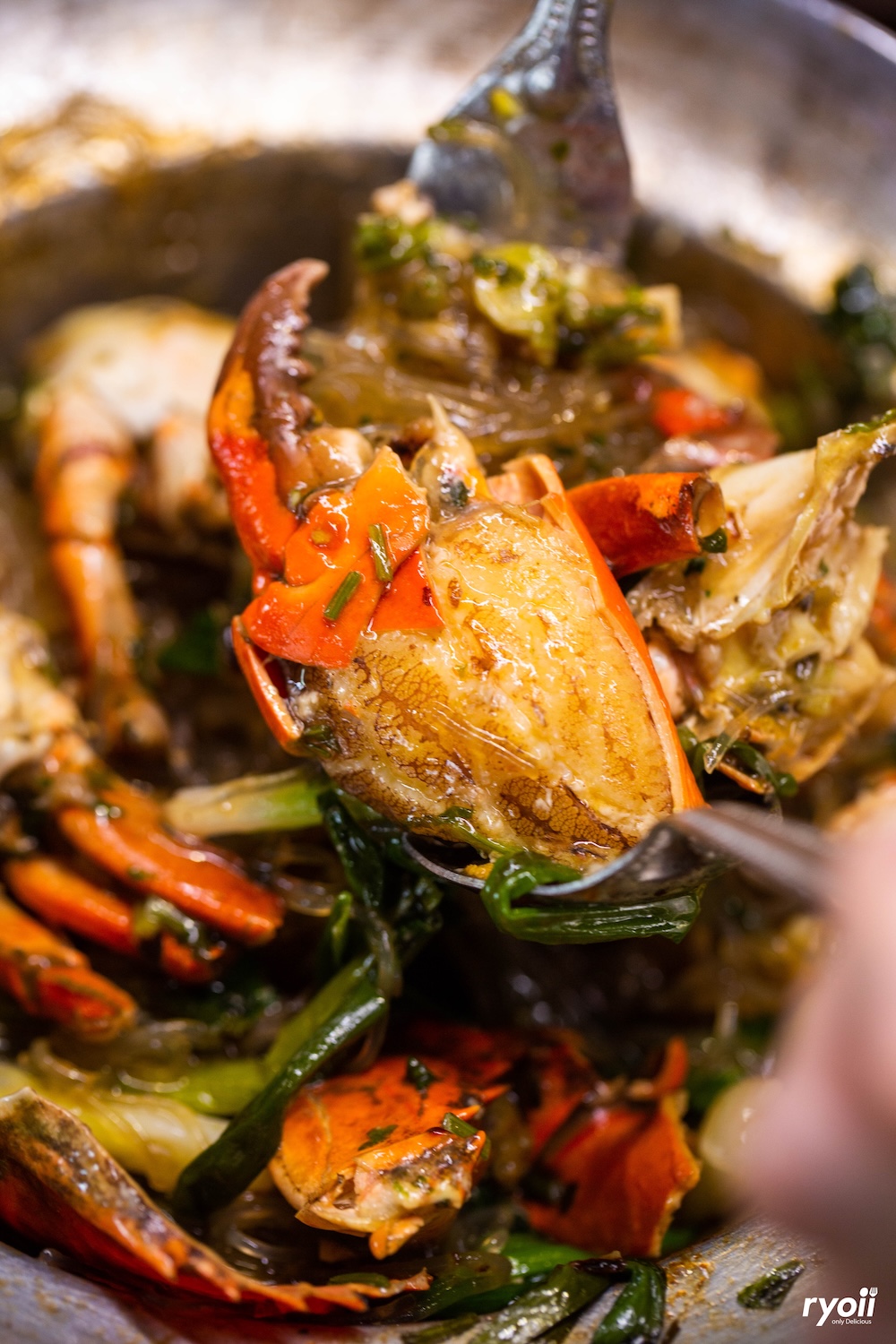 เมนูอาจจะไม่ได้มีให้เลือกทานเยอะ แต่รสชาติดีทุกเมนูค่ะ เรียกได้ว่าเป็นเบอร์หนึ่งเรื่องปูอบ ในด้านวัตถุดิบก็คัดสรรมาอย่างดี ปูสดๆ เป็นๆ ทุกตัว ส่วนการปรุงการอบก็มีเอกลักษณ์ทำให้มีกลิ่นหอมสมุนไพรค่ะ เมนูแนะนำ คือ ปูเนื้ออบวุ้นเส้น ราคา 310-450 บาท, กุ้งอบวุ้นเส้น 290 บาท, ปูไข่อบวุ้นเส้น เริ่มต้น 600 บาท และปูเนื้ออบวุ้นเส้น เริ่มต้น 800 บาทค่ะ