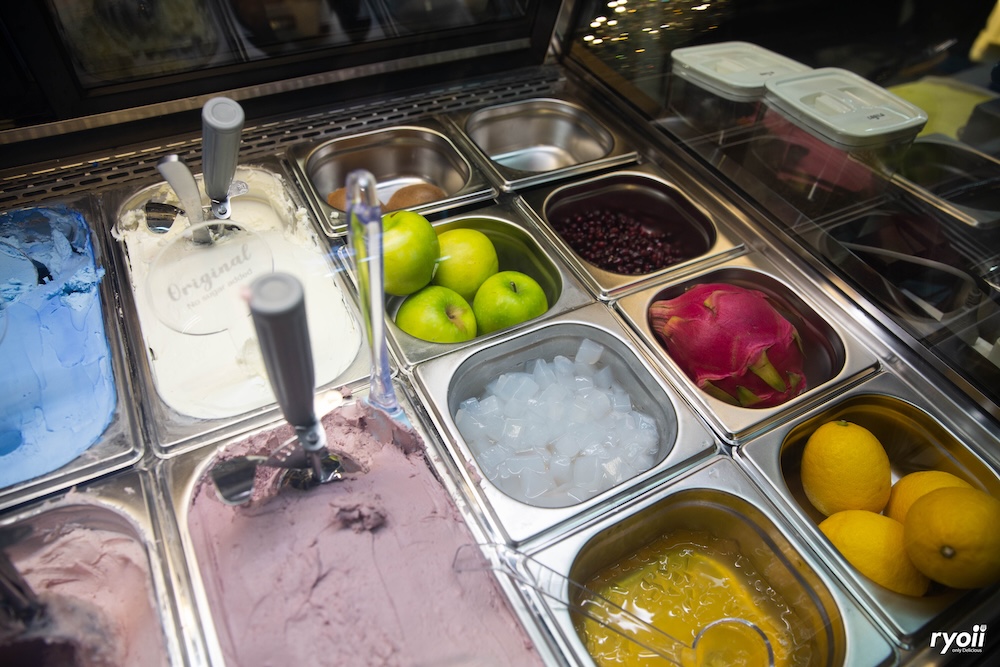The Cheese Baron ตลาดสดธนบุรี ศูนย์อาหารแชนเดอเลียร์ : ร้านขนมหวาน-ไอศกรีมสำหรับสายสุขภาพโดยเฉพาะ ร้านนี้เป็นอีกหนึ่งร้านที่ขึ้นชื่อเรื่องเมนูของหวาน ที่ทานแล้วได้ทั้งความอร่อยและได้สุขภาพดีๆ ติดไม้ติดมือไปด้วยค่ะ เพราะเมนูของทางร้านมี 'โยเกิร์ต' เป็นวัตถุดิบหลัก ซึ่งเต็มไปด้วยจุลินทรีย์โพรไบโอติกค่ะ โดยจะมีให้เลือกทานทั้งไอศกรีมซอฟท์เสิร์ฟ ราคา 69 บาท / 100 กรัม มีทั้งหมด 2 รสชาติ คือ โยเกิร์ตออริจินอล และมัทฉะ (รสชาติจะมีการเปลี่ยนอยู่ตลอดนะ) เมนูนี้ลูกค้าสามารถกดไอศกรีม และเลือกตักท้อปปิ้งเองได้เลยค่ะ