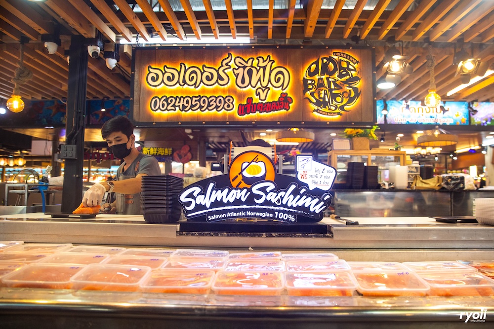 ออเดอร์ ซีฟู้ด ตลาดสดธนบุรี โซนซีฟู้ด : ร้านอาหารทะเลในตลาดสดธนบุรี สำหรับใครที่เน้นทานอาหารทะเลแบบรวดเร็ว เมนูง่ายๆ แต่ยังคงความสดใหม่ของวัตถุดิบ ขอแนะนำร้านนี้เลยค่ะ เมนูอาหารของทางร้านจะเป็นเมนูซีฟู้ดแบบเบสิคๆ แต่การันตีความอร่อยความสดที่ลูกค้าจะได้รับ เช่น แซลมอนซาชิมิ, เค้กแซลมอนซาชิมิ, ปูม้าแกะ, แซลมอนดอง, กุ้งดอง, ปูไข่ดอง และปูม้าดอง ที่สำคัญคือน้ำจิ้มเขาเด็ดมากๆ ขอการันตีความแซ่บเลย!