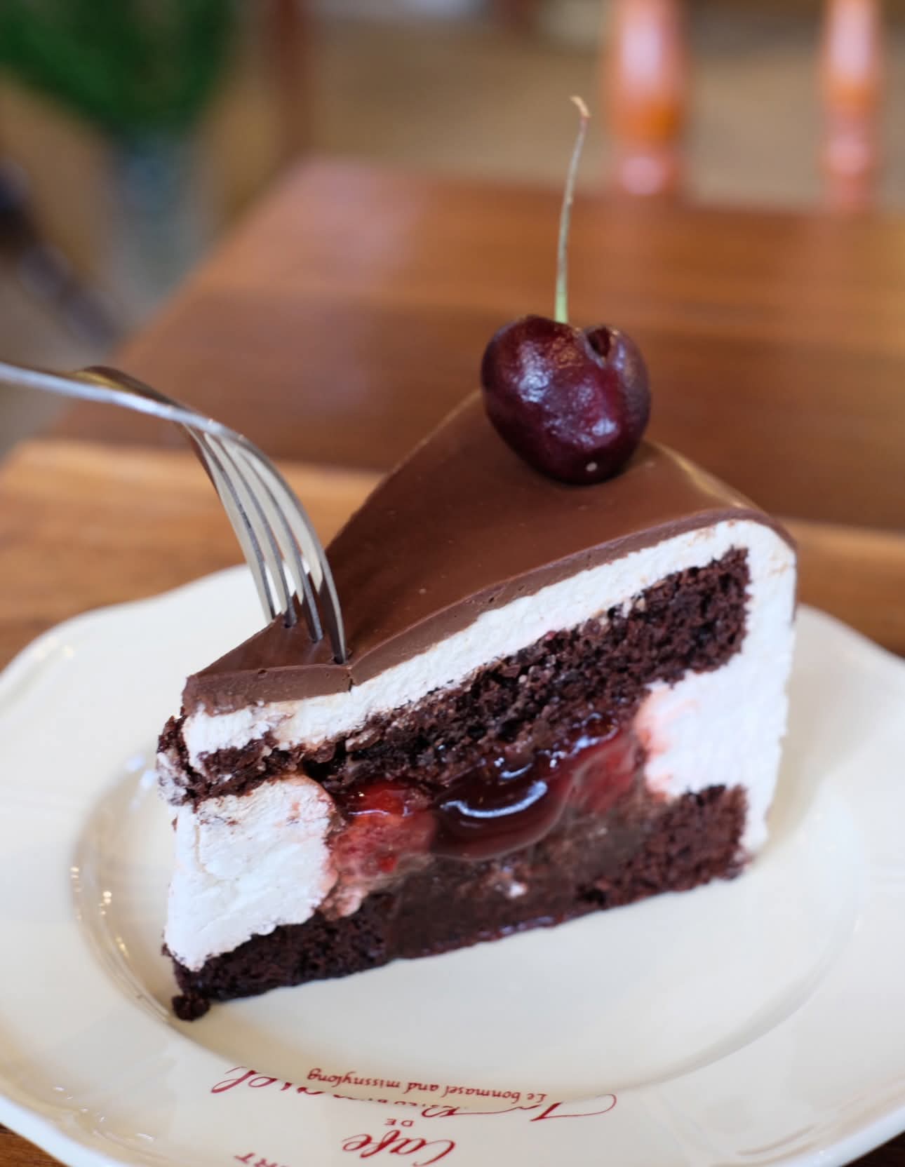 ขนมเค้กและเบเกอรี่โฮมเมด ที่เรียงรายอยู่ในตู้ ชวนให้เลือกแทบไม่ถูก โดยเฉพาะเค้กที่ตกแต่งอย่างพิถีพิถัน ทั้งเค้กช็อกโกแลตเข้มข้นเค้กสตรอว์เบอร์รีเนื้อนุ่ม สอดไส้ครีมและผลไม้สด รสชาติหวานละมุน ไม่เลี่ยน ทานคู่กับกาแฟหรือชาก็เข้ากันได้อย่างลงตัว นอกจากนี้ยังมีขนมปังและเบเกอรี่อบใหม่ ที่กลิ่นหอมยั่วใจตั้งแต่ยังไม่ทันชิม