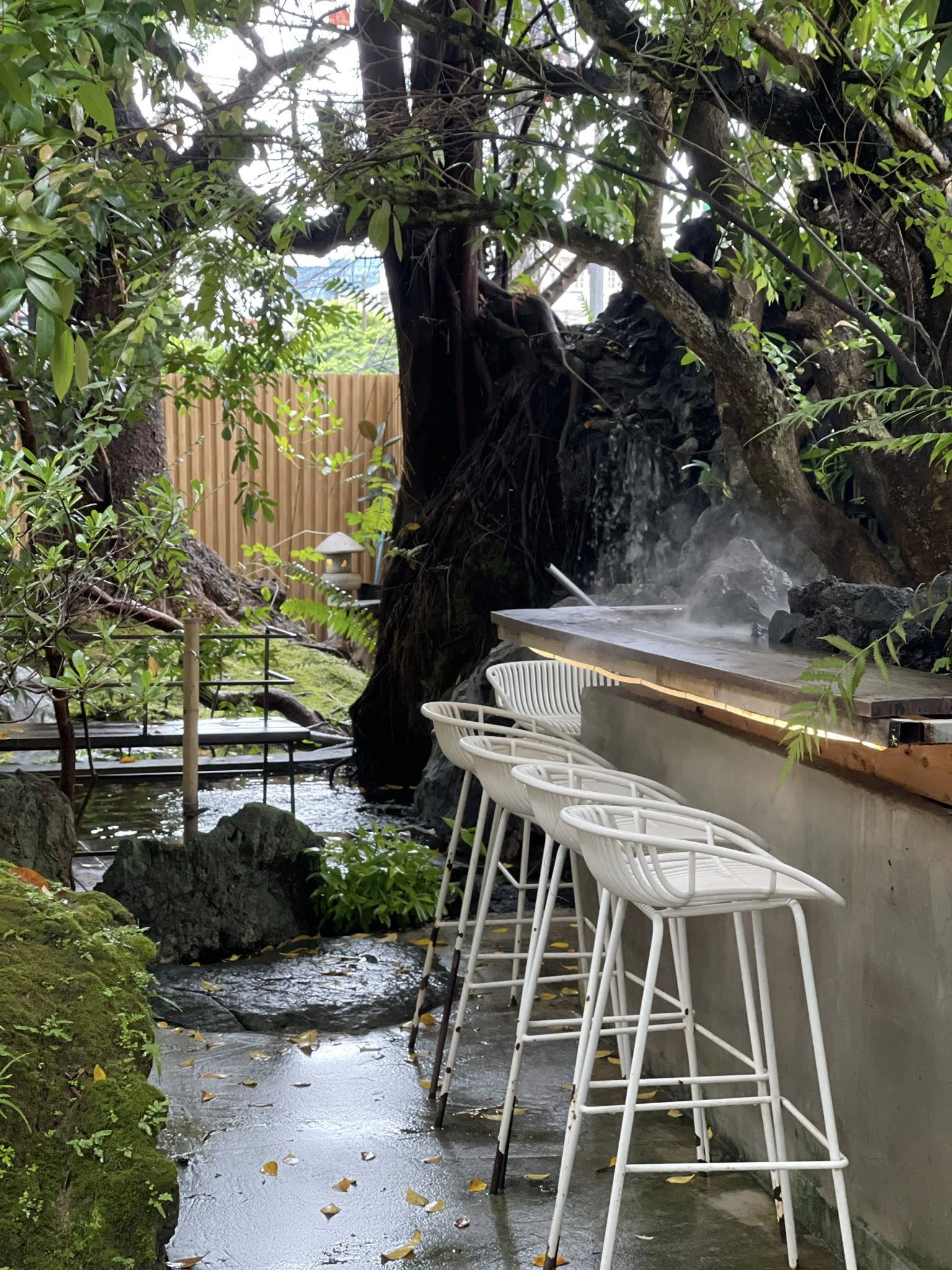 ไม่ว่าจะเป็นโซนที่นั่งใต้ต้นไม้ใหญ่ เคาน์เตอร์บาร์ริมสวนที่มีไอหมอกลอยเบาๆ หรือมุมโต๊ะไม้ที่มองเห็นสวนหินและโคมไฟญี่ปุ่น ทุกมุมให้ความรู้สึกผ่อนคลาย เหมาะทั้งกับการมานั่งชิล อ่านหนังสือ ทำงาน หรือ แค่อยากพักใจและเงียบสงบ