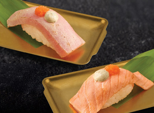 ซูชิทูน่าเบิร์น แบล็คทรัฟเฟิลมาโย และซูชิแซลมอนเบิร์น แบล็คทรัฟเฟิลมาโย