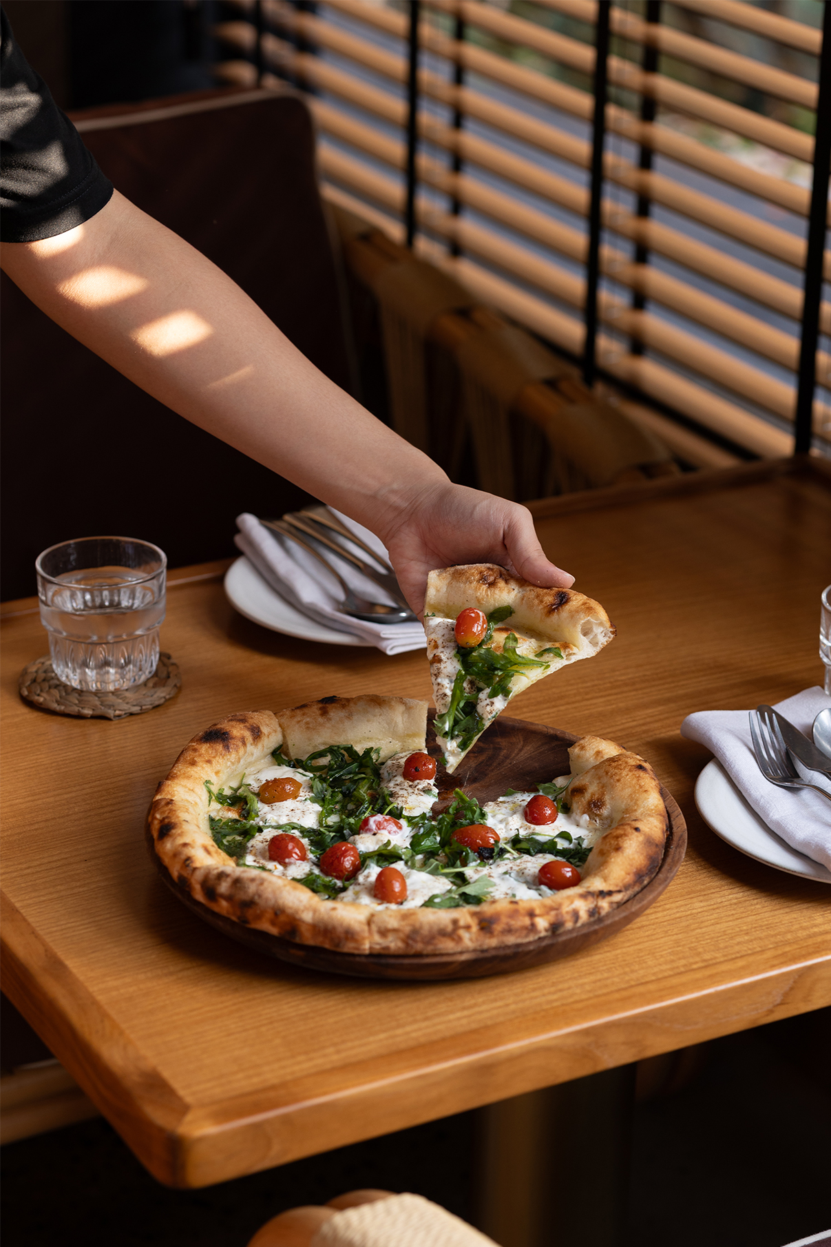 BIMBO Pizza & Josper Sukhumvit 26 พิซซ่าแป้งโฮมเมดที่ขึ้นด้วยมือ และการปรุงอาหารด้วยเตาถ่าน Josper ซึ่งเป็นหัวใจของครัว พิซซ่าอบจนขอบหอมไหม้เล็กน้อย ขณะที่เนื้อและผักย่างบนไฟจริง ให้กลิ่นควันบาง ๆ และรสชาติที่ชัดเจนของวัตถุดิบ