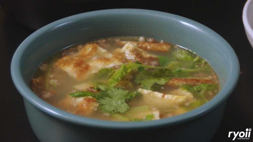แกงจืดไข่น้ำ แม้ว่าจะเป็นเมนูซิกเนเจอร์ที่ดูเรียบง่าย แต่ต้องใช้ความประณีตสูง น้ำซุปเคี่ยวจากกระดูกหมูด้วยไฟอ่อนจนใส หวานกลมกล่อม ไม่หนัก หัวใจของจานคือไข่น้ำที่ตีและปรุงรสอย่างเบามือ ทอดให้ฟู ก่อนหั่นใส่ลงในน้ำซุปอุ่น ๆ ทำให้ไข่นุ่ม เบา และดูดซับรสซุปได้เต็มที่ เสริมด้วยหมูสับและผักสด เมื่อซดจะได้ความอบอุ่น สบาย และละมุน