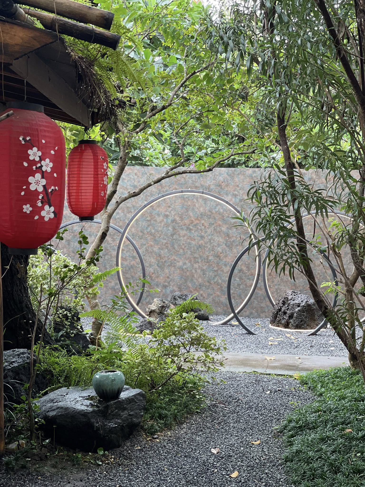 ไม่ว่าจะเป็นโซนที่นั่งใต้ต้นไม้ใหญ่ เคาน์เตอร์บาร์ริมสวนที่มีไอหมอกลอยเบาๆ หรือมุมโต๊ะไม้ที่มองเห็นสวนหินและโคมไฟญี่ปุ่น ทุกมุมให้ความรู้สึกผ่อนคลาย เหมาะทั้งกับการมานั่งชิล อ่านหนังสือ ทำงาน หรือ แค่อยากพักใจและเงียบสงบ