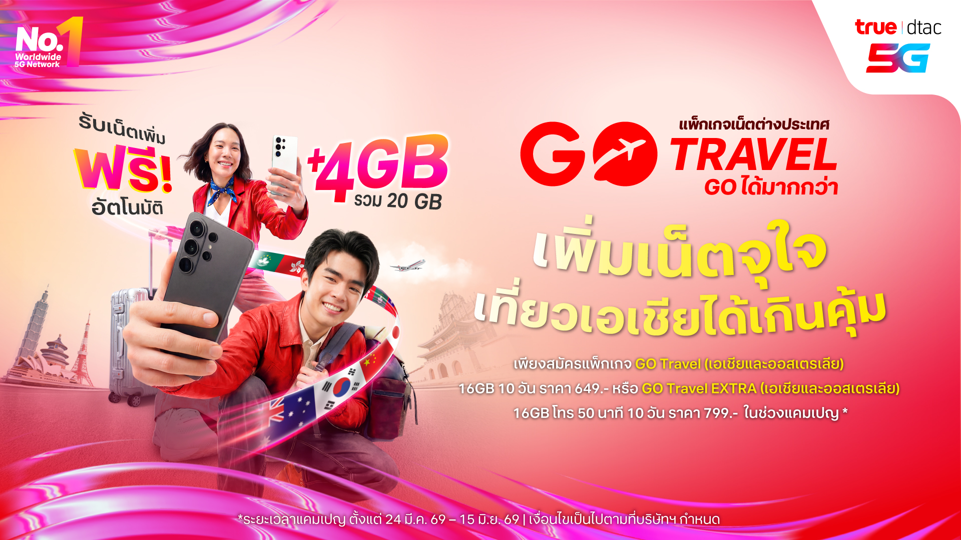 แพ็กกระเป๋าแล้ว ‘GO Travel’ ไปกับ ทรู ดีแทค! ฟรี! UP เน็ตโรมมิ่ง 4GB และประกันเดินทางสูงสุด 500,000 บาท