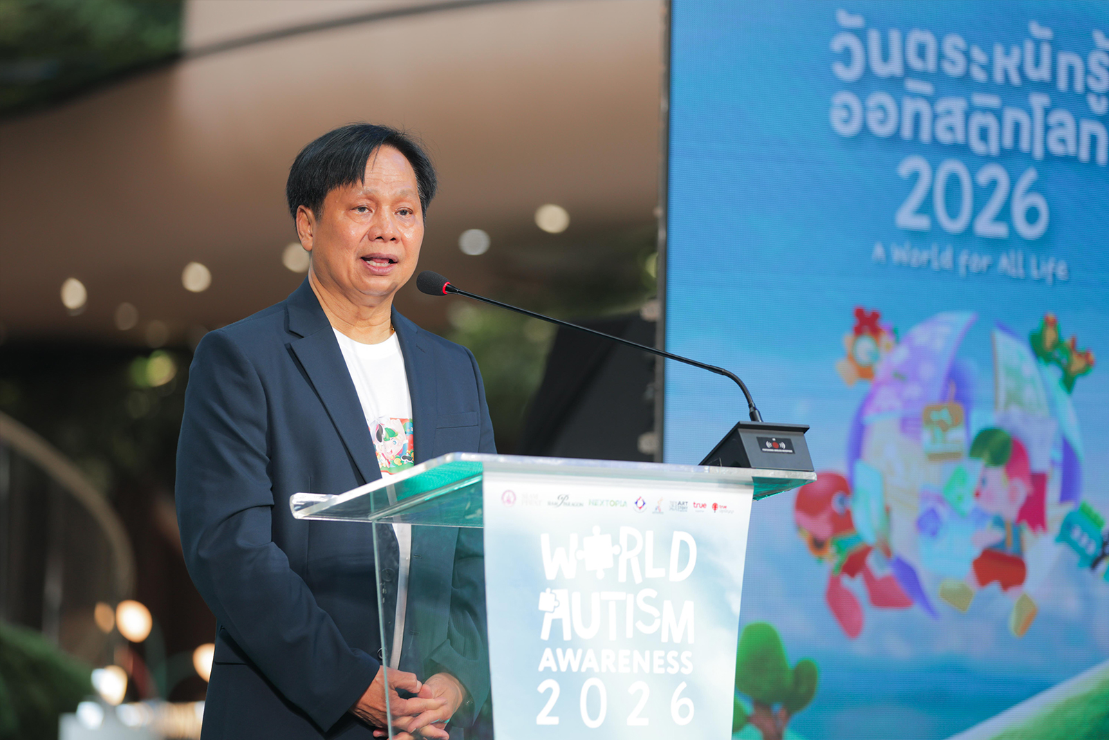 สำหรับการจัดงาน วันรณรงค์ตระหนักรู้ออทิสติกโลก ปี 2569 จะมีขึ้นระหว่างวันที่ 4–12 เมษายน 2569 ณ Nextopia ชั้น 5 สยามพารากอน ภายใต้แนวคิด “A World for All Life” ที่เชื่อมโยง Eco Spectrum Wellness เปิดพื้นที่ให้ประชาชนร่วมเรียนรู้และทำความเข้าใจบุคคลออทิสติกผ่านกิจกรรมหลากหลาย อาทิ โซน Autism Digital Learning Center ที่นำเสนอหลักสูตรดิจิทัลและประสบการณ์ใช้งานเทคโนโลยี VR และ AI เพื่อยกระดับศักยภาพของบุคคลออทิสติกและครอบครัว พร้อมเชิญชวนทุกภาคส่วนร่วมสมทบทุนผ่านแอป TrueMoney เพื่อขยายศูนย์เรียนรู้เพิ่มอีก 40 แห่งทั่วประเทศ ภายในงานยังมี บูธทรูคอฟฟี่ เมนูพิเศษจากแรงบันดาลใจของบาริสต้าบุคคลออทิสติก และ Merchandise Collection Donate Back จากศิลปิน Artstory by Autistic Thai รวมถึงกิจกรรมศิลปะและเวิร์กช็อปที่เปิดโอกาสให้ทุกคนได้สัมผัสพลังแห่งความคิดสร้างสรรค์ และการเรียนรู้ร่วมกันในสังคมที่เปิดกว้าง