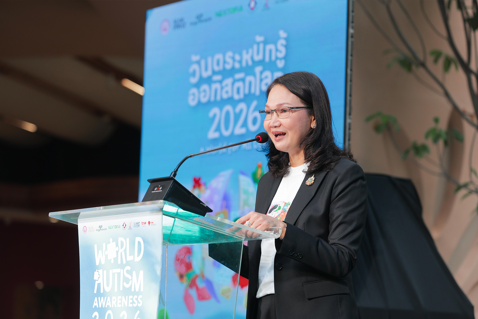 ภายในพิธีเปิดงานได้รับเกียรติจาก นางสาวสนธยา บุณยภูษิต อธิบดีกรมส่งเสริมและพัฒนาคุณภาพชีวิตคนพิการ เป็นประธานกล่าวเปิดงานและมอบโล่แก่หน่วยงานที่สนับสนุนงานด้านบุคคลออทิสติกในประเทศไทย ประจำปี 2569 ร่วมด้วย นายชูศักดิ์ จันทยานนท์ นายกสมาคมผู้ปกครองบุคคลออทิซึม (ไทย) ดร.รุ่งอรุณ ไสยโสภณ รองอธิบดีกรมส่งเสริมการเรียนรู้ และ ดร.เนตรชนก วิภาตะศิลปิน หัวหน้าคณะผู้บริหารสายงานด้านความยั่งยืนองค์กร บมจ. ทรู คอร์ปอเรชั่น เข้าร่วมแสดงพลังความร่วมมือเพื่อขับเคลื่อนสังคมที่ไม่ทิ้งใครไว้ข้างหลัง อีกหนึ่งไฮไลต์สำคัญของงานคือการได้รับเกียรติจาก โอปอล สุชาตา ช่วงศรี Miss World 2025 ร่วมเป็นพลังเสียงแห่งความหวังในฐานะตัวแทนประเทศไทยบนเวทีมิสเวิลด์ ส่งต่อสารแห่งความเข้าใจ ความเท่าเทียม และการยอมรับความแตกต่าง ไปยังบุคคลออทิสติกและครอบครัวทั่วประเทศ ณ Nextopia ชั้น 5 สยามพารากอน