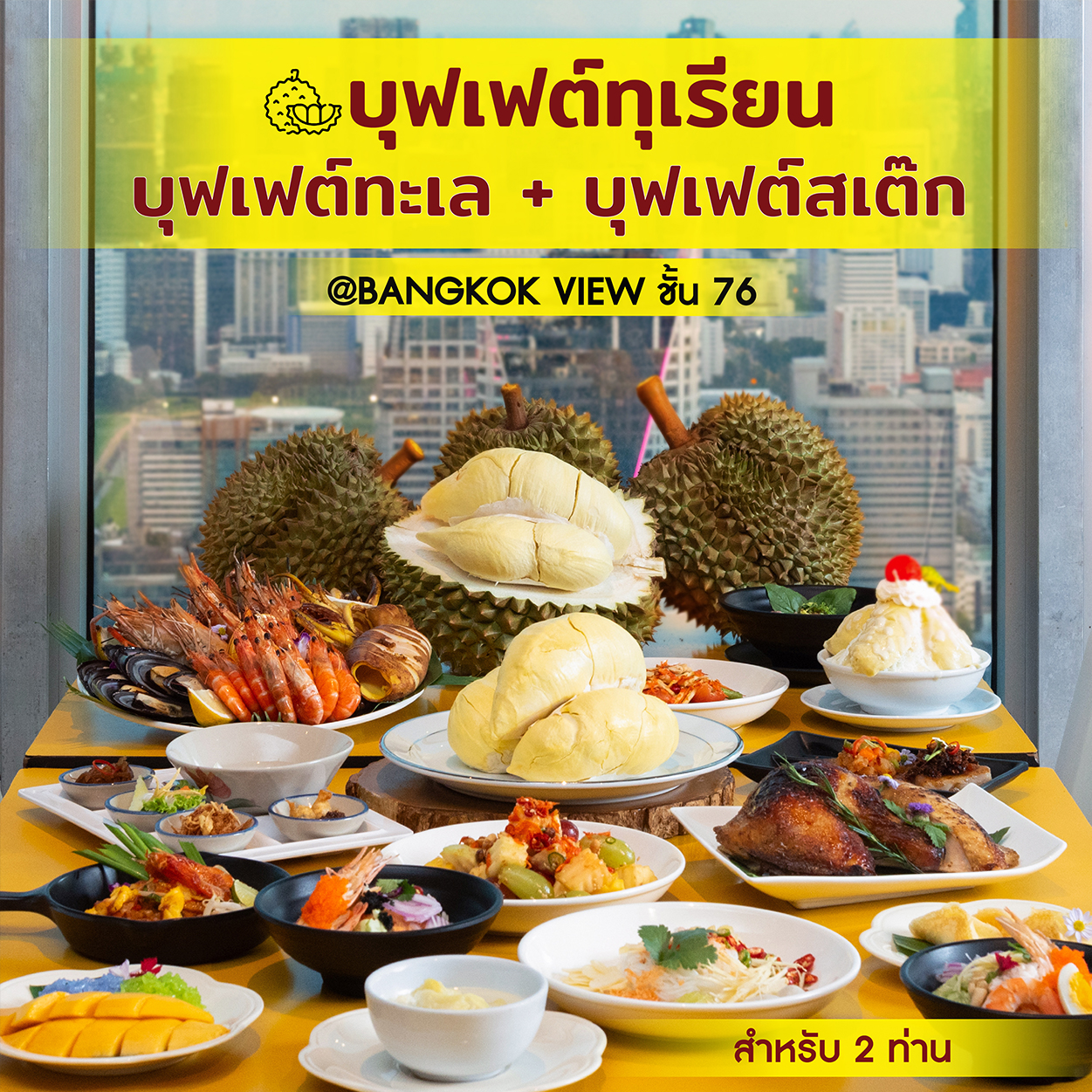 บุฟเฟต์ทุเรียนฟีเวอร์ ชั้น 76 สำหรับ 2 ท่าน มูลค่า 2,980 บาท