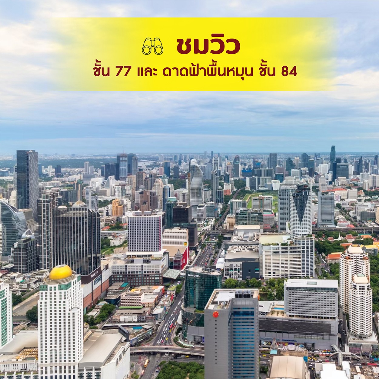 ฟรี! ชมวิว บนจุดชมวิวดาดฟ้า ชั้น 77 และ 84 มูลค่า 900 บาท
