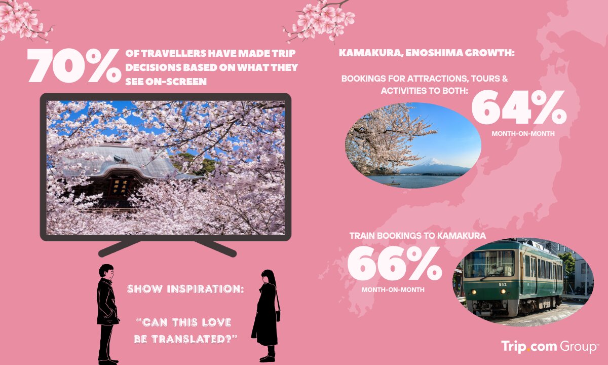 หนึ่งในแรงขับเคลื่อนสำคัญของเทรนด์นี้คือ “Screen Tourism” หรือการท่องเที่ยวตามรอยซีรีส์และภาพยนตร์ โดยรายงาน Momentum Report ของ Trip.com Group ระบุว่า นักท่องเที่ยวกว่า 70% เลือกจุดหมายปลายทางจากสิ่งที่เห็นผ่านหน้าจอตัวอย่างที่ชัดเจนคือซีรีส์ยอดนิยมจาก Netflix เรื่อง Can This Love Be Translated? ที่นำเสนอภาพของเมืองคามาคุระและเอโนชิมะ จังหวัดคานากาวะ ซึ่งอยู่ห่างจากโตเกียวเพียง 1 ชั่วโมง โดยนับตั้งแต่ซีรีส์ออกฉาย การจองตั๋วรถไฟไปคามาคุระเพิ่มขึ้นถึง 66% ต่อเดือน ขณะที่การจองโรงแรมและยอดการค้นหาสถานที่ท่องเที่ยวเพิ่มขึ้น 55%